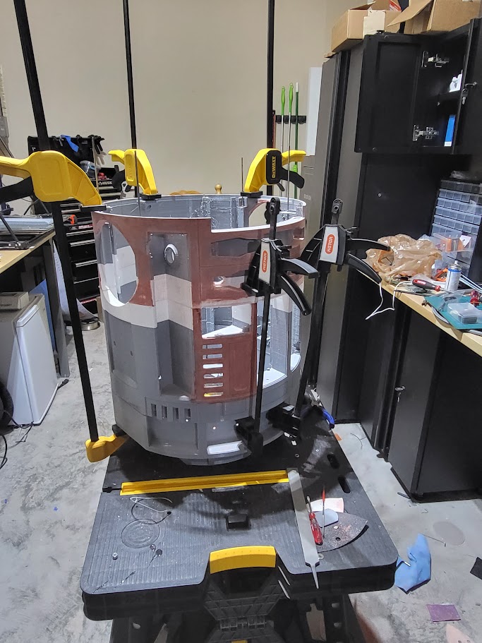 C1-10P ("Chopper" from Rebels and Asohka) was a joint build with my wife. After seeing the success of R2-D2, my wife wanted to join in the fun and become a droid wrangler too. She has an afirmation of the Rebels show and really liked the appeal of Chopper. Personally, I think its his attitude. Chopper was also printed exclusively in PETG and no other modifications were made structurely. I have to admit he is pretty cool and built solid. We did take him to show him off at the Houston Air Show where he had a minor mishap where he hit a low spot causing him to fall over. His dome hit the gound and we feared the worse. The only damage was to his aerial antenna which was a quick print - whew! Other than that, no major issues other than keeping up with the normal wear and tear that is expected due to trooping.